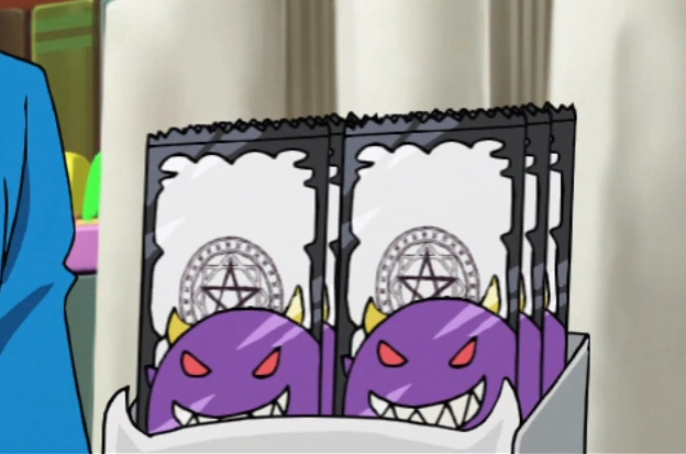 A single use sticker used to force-summon a user's familiar. They need to follow a criteria that it has to be put on the caster's hand then putting their hands up, and verbally saying Banzai (万歳) in order to successfully summon their familiar. To manually undo the summoning, the user must clap their hands, though its effects can wear itself out after a short period of time.[8] This version is a mini-sized, and can be bought to the school's store for 333 bills.